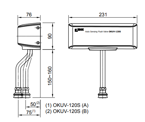 Kích thước lắp đặt van xả tiểu tự động INAX OKUV-120S(A/B)