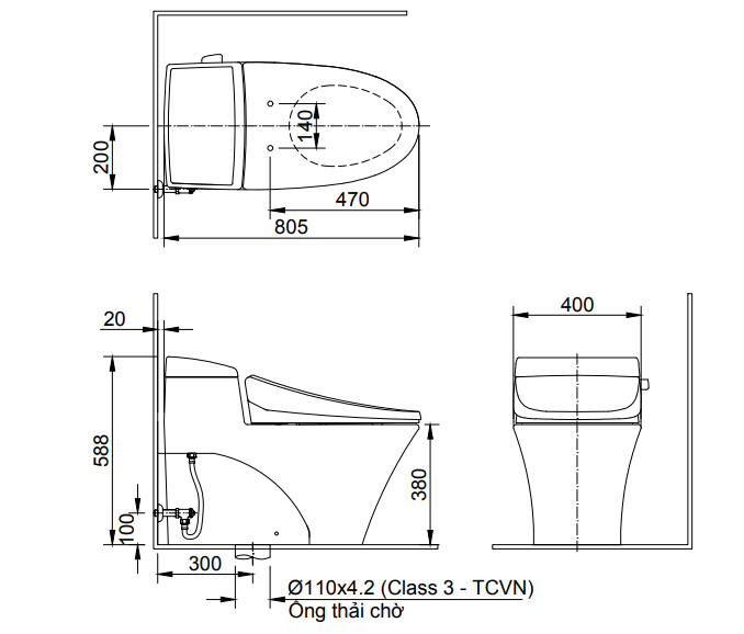 Bản vẽ kích thước lắp đặt bồn cầu inax 1 khối AC-1017VRN