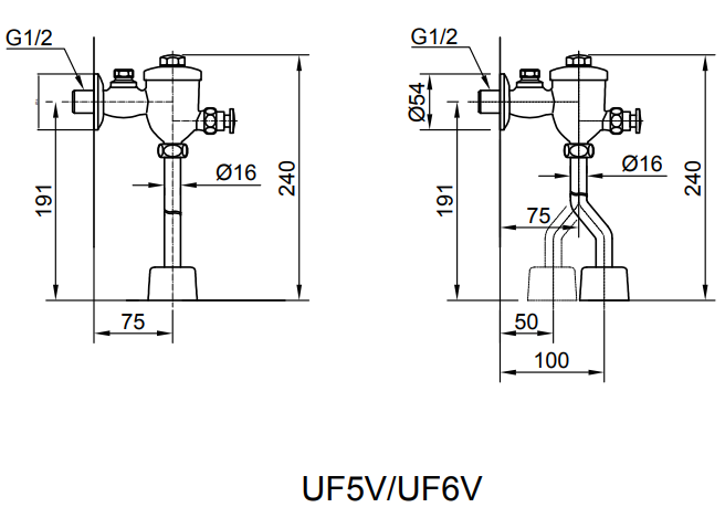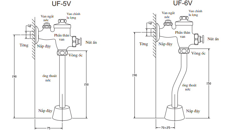 Kích thước lắp đặt van xả tiểu inax UF-6V