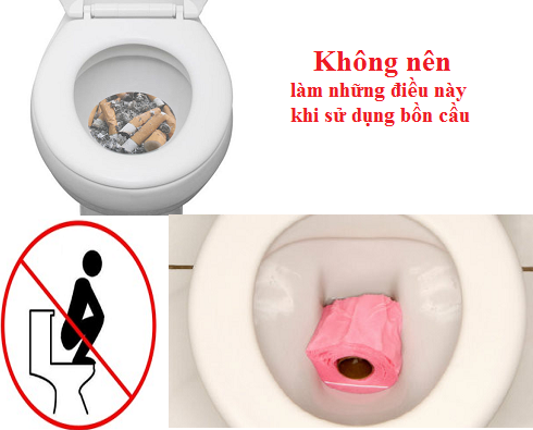 Không nên xả các chất như: giấy ăn, rác,… vào bồn cầu. Những chất này đa phần là khó tan, và nó sẽ làm gây tắc nghẽn bồn cầu.