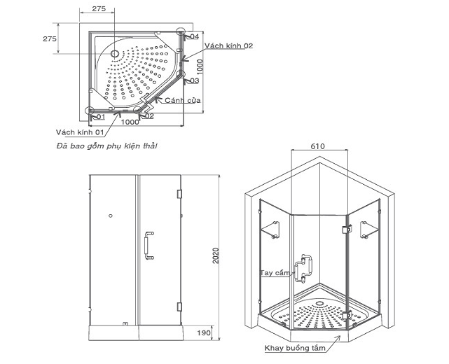 - Kích thước: 1000x1000x2020mm (dài x rộng x cao)