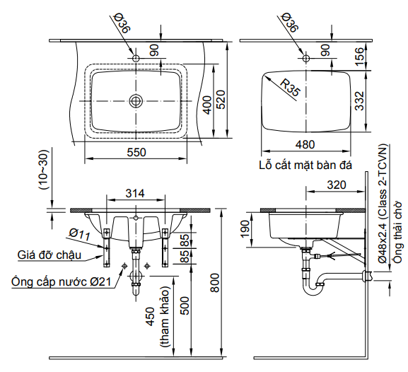 - Kiểu chậu: chậu âm bàn sang trọng, dễ dàng vệ sinh